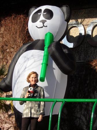 Here’s me with my new toy panda Pandora (Pin Yin’s Scottish cousin) and a huge blow up panda outside Edinburgh Zoo!