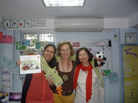 Wow that was fun! Five fabulous sessions at Lantau International School, Mui Wo, where birds sing in the trees, buffaloes cross the road, snakes visit the playgrounds and the kids are just FANTASTIC! I had such a great time – I hope you had at least half as much fun as I did! Here are the feisty Grade 3s with their terrific teachers above! Thanks Pam Venter (in the red scarf below) for inviting me!