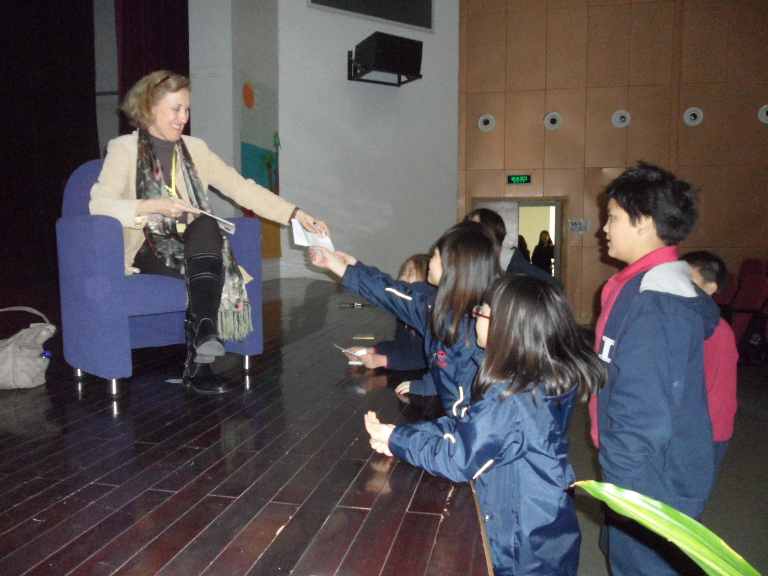February 28, 2012 at 8:18 am | Posted in Uncategorized | Leave a commentA big THANK YOU to all the wonderful kids and dedicated teachers at Singapore International School Suzhou for a great day of reading sessions with Pin Yin Panda! I hope you all had as much fun as I did! And special thanks to lovely librarian Eileen Hurley for preparing the kids so well and making some magnificent displays! Here’s Eileen and me (above) with one of them!