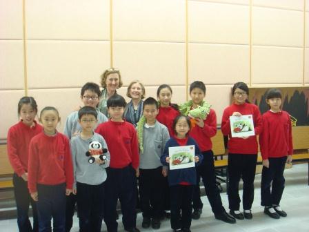March 13, 2012 at 6:32 am | Posted in Uncategorized | Leave a commentIt was all go at Yew Chung International Primary School today when Pin Yin Panda and I visited the Grade 4s, 5s and 6s for some rambunctious readings!! What with hens’ teeth all over the place, drowned pandas and leaping pigs, there were lots of giggles all round! I look forward to all your Clever Competition entries! Here are some of the Grade 5s, and below is lovely librarian and friend Ann Brown!
