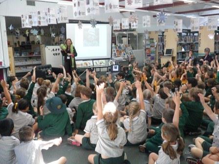 August 13, 2012 at 10:53 am | Posted in Uncategorized | Leave a commentHello all you funny and fabulous kids from AB Paterson College in Arundel near the Gold Coast! I had such a great time today meeting you all! What with story readings for the Kindies up to Grade 4s, then workshops for the Grade 5s and 6s, it was a full-on day! Here are some photos courtesy of lovely teacher librarian Nikki Carpenter – thanks Nikki (pictured below) for hosting such a wonderful day and making me feel so welcome!