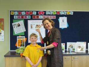 Introducing Sam, a Churchie student and man of many ideas. Sam not only created the wonderful welcome display you see behind us (above) but also explained to me his fantastic idea for Boat Poems. Sam makes boats out of paper, then writes poems on the side, and then sends the boats down the river to whoever may find them. Isn’t that a magical idea? Now that’s a great way to spend the summer holidays, for all you lucky kids still on break in the Northern Hemisphere. Why don’t you make a boat too, write a poem on it, and send it sailing – and if you take a photo of it and send it to me at sarah@auspicioustimes.com I’ll publish it on my blog!