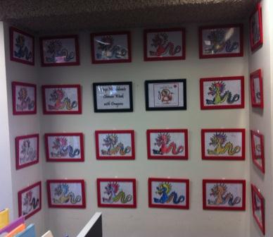 September 14, 2012 at 10:22 am | Posted in Uncategorized | Leave a commentWow, those kids at Australian International School Hong Kong are an impressive bunch! It’s Chinese Week and the whole school – kids, teachers and classrooms – was decked out in Chinese costume when I dropped by today! And Chester Choi was there too – take a look at this wall full of coloured-in dragons to celebrate him! Chester’s in the black frame in the middle!
