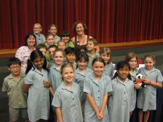 November 16, 2012 at 11:53 am | Posted in Uncategorized | Leave a commentA big thank you to lovely librarian Jo-Anne Ward and the teachers and kids of the Australian International School Singapore for giving me such a warm welcome yesterday! It was great to read you my Tale of Pin Yin Panda, and to do some writing workshops with some of you too! I’m looking forward to seeing some funny and fabulous AISS entries in my next Clever Competition, which I’ll be announcing this weekend! Here’s a photo of me with some of the gorgeous kids and Jo-Anne!