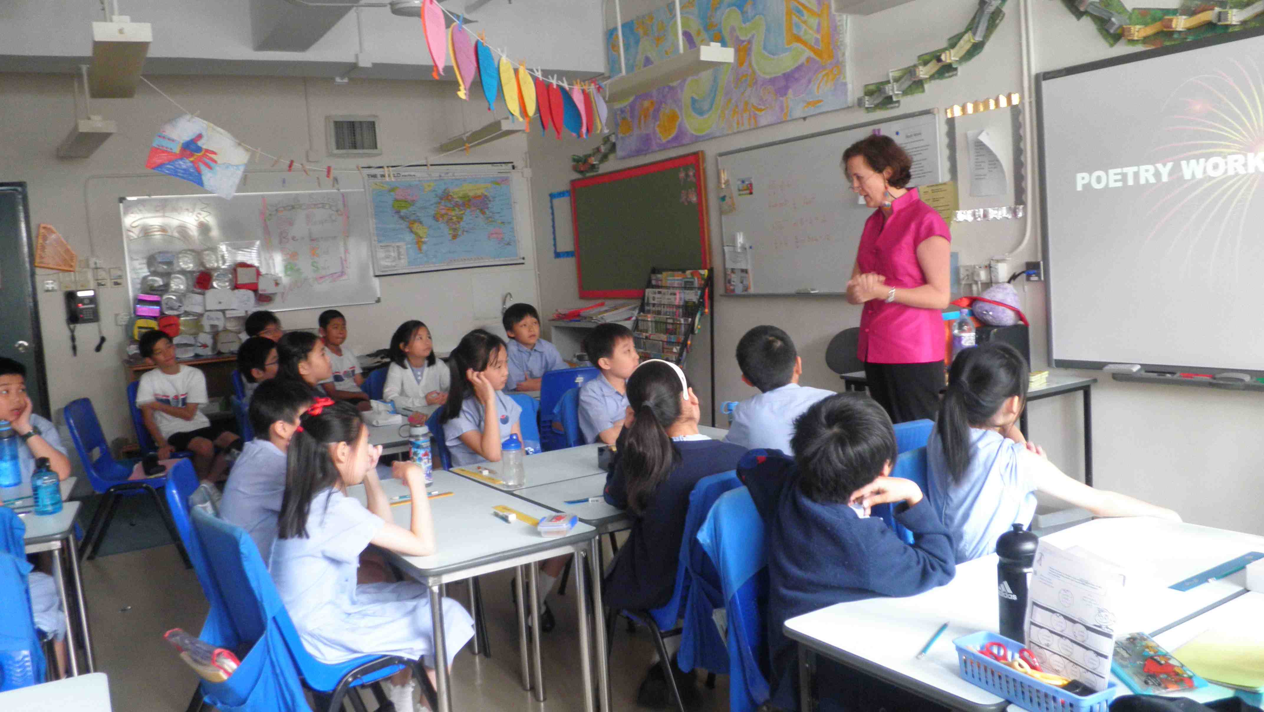 May 2, 2013 at 2:53 pm | Posted in Uncategorized | 3 CommentsA big thank you to Ann Brown, librarian extraordinaire at Yew Chung International School in Kowloon Tong, for inviting me in today for Poetry Workshops with the Year 5s! What with knock knock jokes and limericks and haikus and rhyming verse, not to mention clerihews and ballads and funny free verse, we had a lot of fun! And the kids did a masterly job on Destroying the School at the end of the sessions, with some fabulous rhymes and perfect rhythm – well done all of you! I look forward to some fantastic entries in my Clever Competition!
