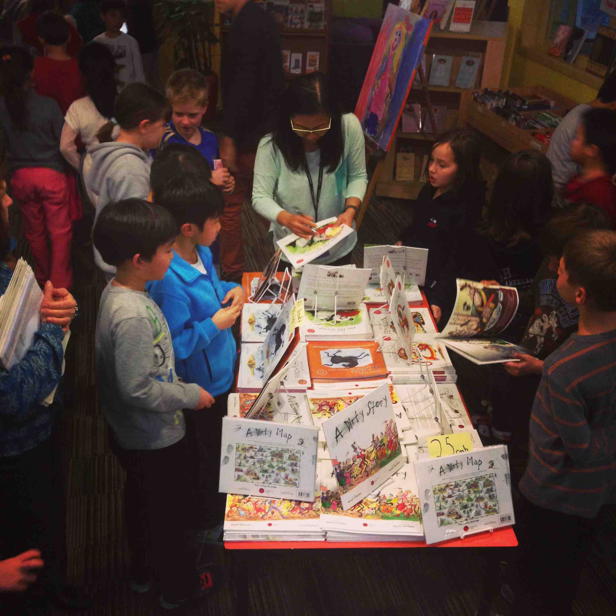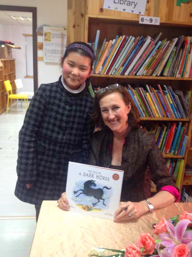 And last but not least, I spent a fabulous final two days with the inspiring teachers and kids of YK Pao School in Shanghai! On our first day together, we had a lot of fun with story readings. And on our second day, I met the kids personally with a fabulous, huge book signing! Here I am with some lovely fans, and Jon Banks, my charming host, standing behind!