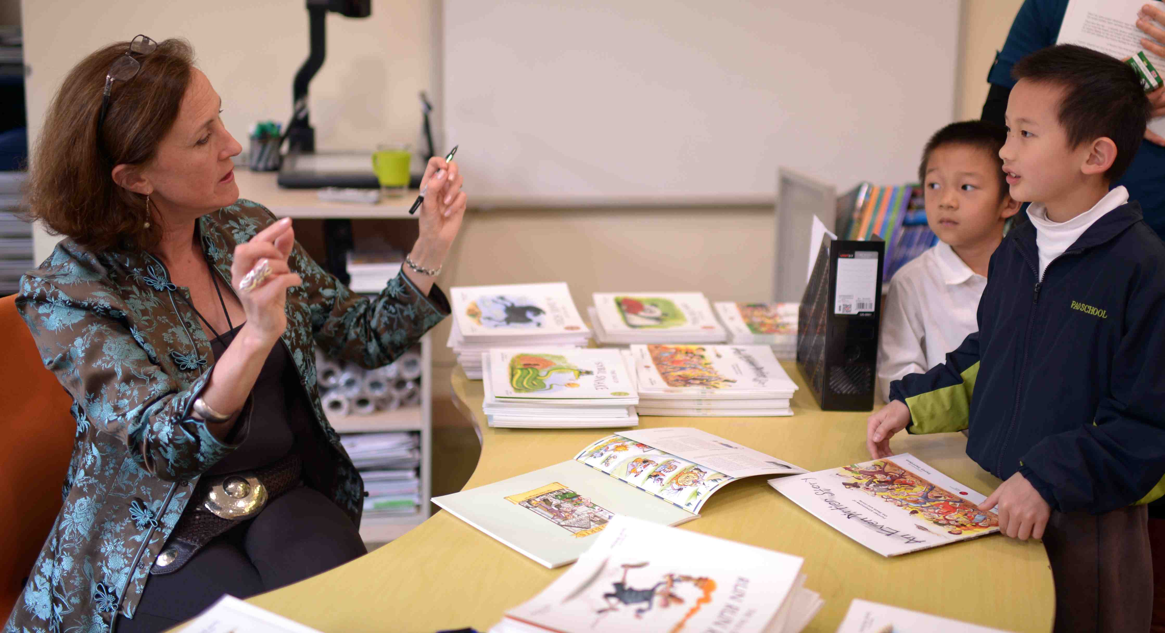 Here is the lovely Sally Scrymgeour, Head of Literacy Year 3 teacher at British International School Shanghai, Pudong campus, who was my host when I visited on Monday 17th March! And also pictured, some gorgeous BISS kids, as well as one of our reading sessions.