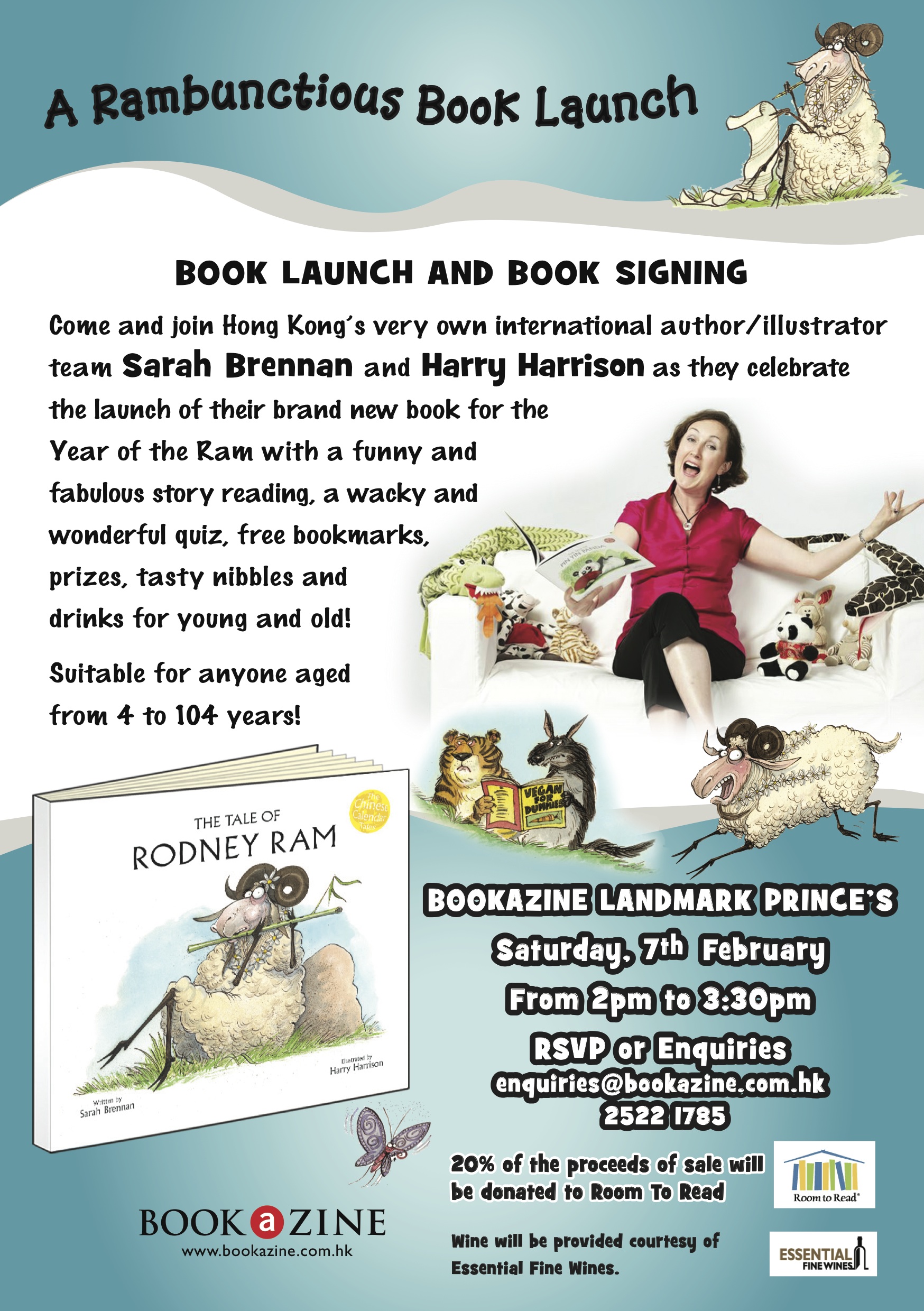 February 3, 2015 at 2:42 pm | Posted in Uncategorized | Leave a commentIf you like hearing funny stories…and winning prizes in Harry Harrison’s funny quizzes…and getting chocolate laissee packets…and a FREE bookmark….and eating yummy nibbles….then the official Launch Party for The Tale of Rodney Ram is a must! It’s THIS SATURDAY, 8th February, at Bookazine, 3rd floor Princes Building in Central, from 2pm to 3.30pm: I’ll see you all there! Don’t forget to register at enquiries@bookazine.com.hk!