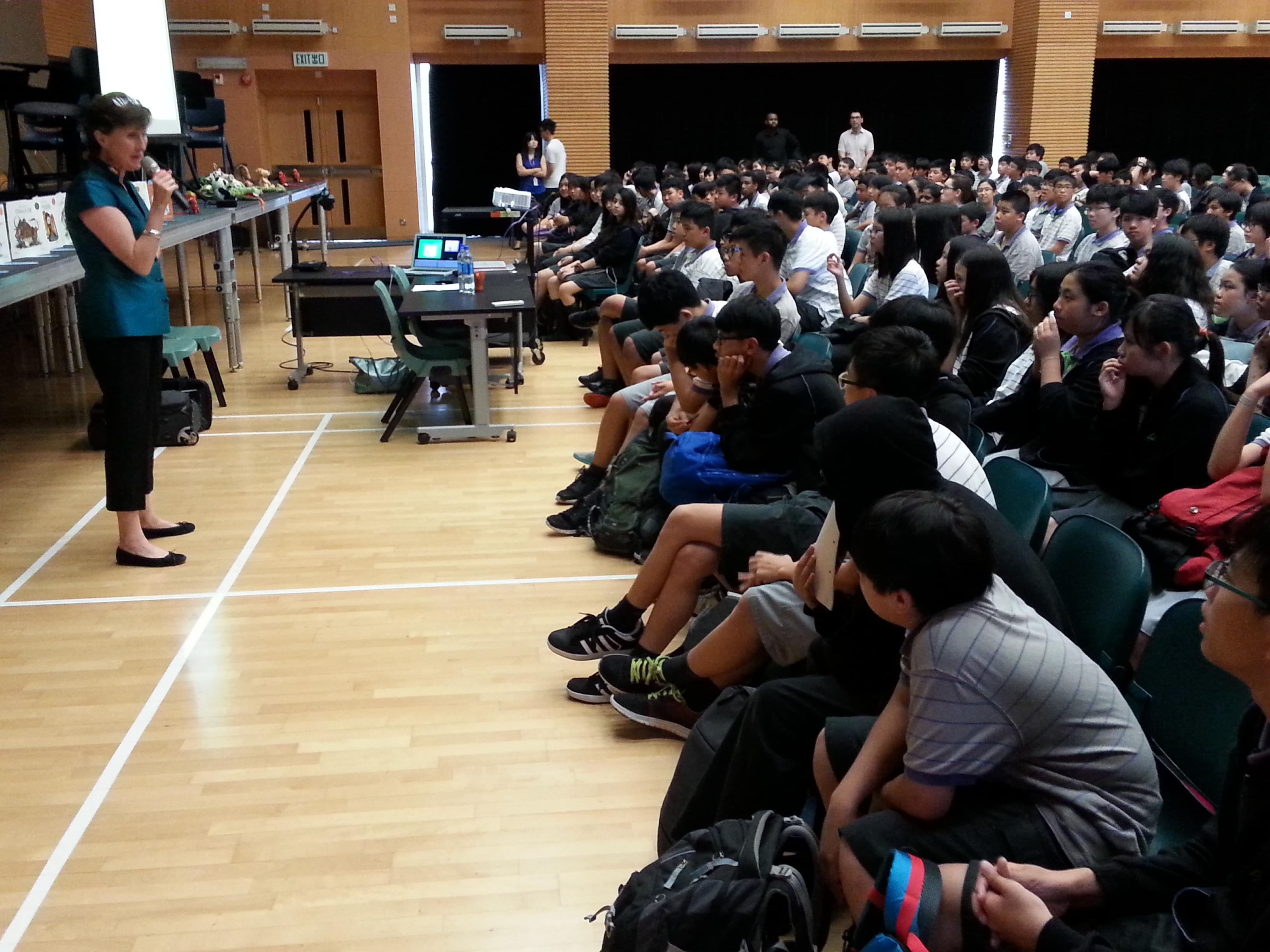 May 19, 2015 at 5:02 pm | Posted in Uncategorized | 5 CommentsA big thank you to Dr Solomon Basimalla for inviting me to speak today at ELCHK Lutheran Academy in Yuen Long. It was great to meet the whole school! The Year 1s to Year 3s met my cheeky Pin Yin Panda; the Year 4s to Year 6s met Rodney Ram; the Year 7s to 9s heard all about why Books are a Brain’s Best Friend, and last but not least, the Year 10s to Year 11s learned how to Publish a Book from Brilliant Idea to Final Product! It was a BIG day! I can’t wait to see you all at the Book Fair on Thursday! And I’m giving a very special discount on my books, so you can buy lots and pots, and I can sign them all for you – yippee!