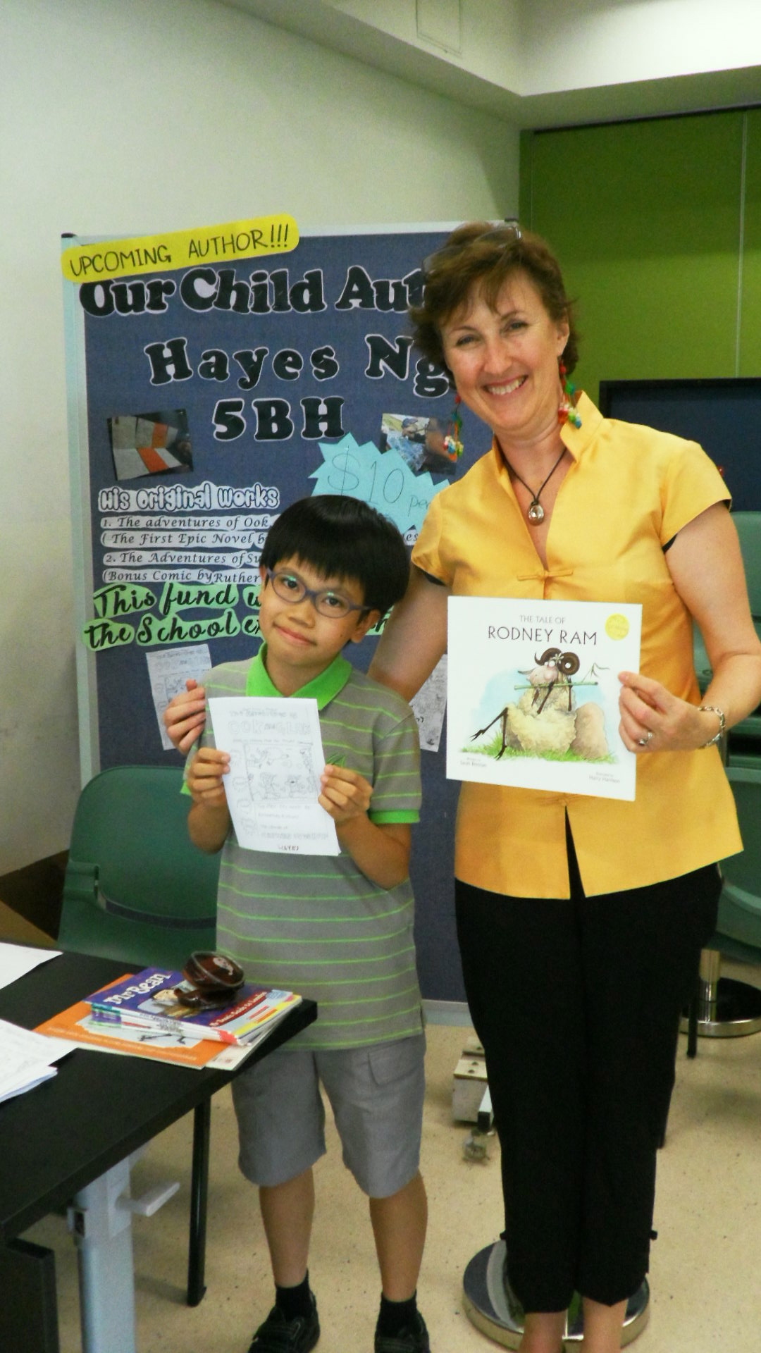 Introducing Hayes Ng, from Year 5BH, who was selling his own fantastic comic books, which he made by himself – they were great fun! Hayes has written at least 5 books, and is a very talented young writer!