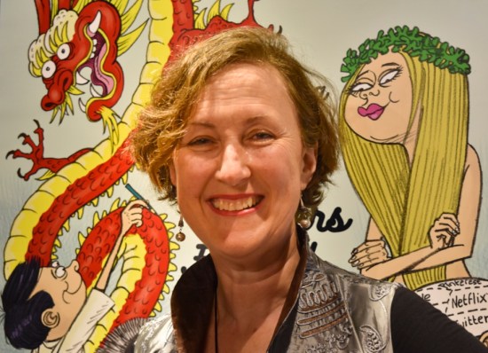 Leave a commentAuthor Sarah Brennan presents her work at the Hong Kong International Young Readers Festival in Central, Hong Kong, on March 13, 2015. The festival’s poster is seen in the background. Katrina Hamlin, 2015.