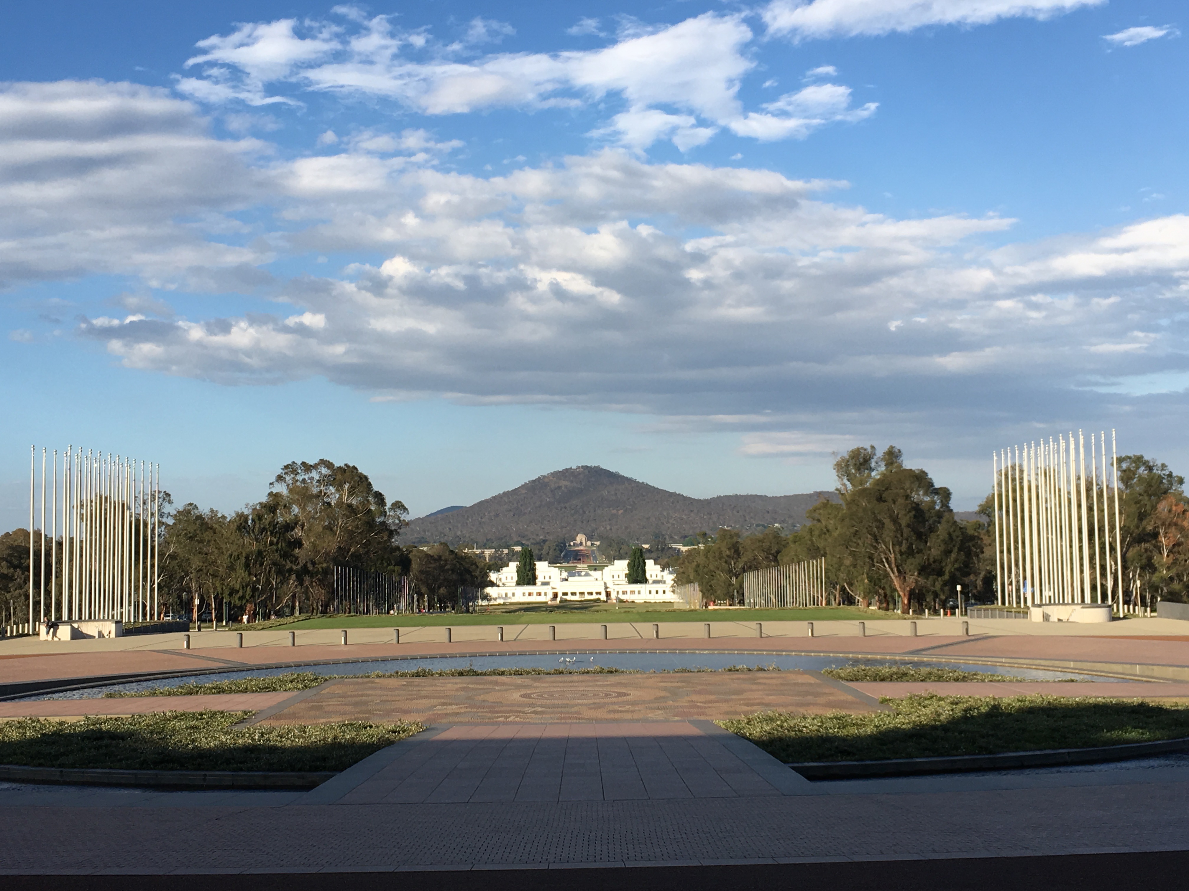 Leave a commentView from the front of new Parliament House, with the old Parliament House in the background, and, in the far background, the magnificent War Memorial.