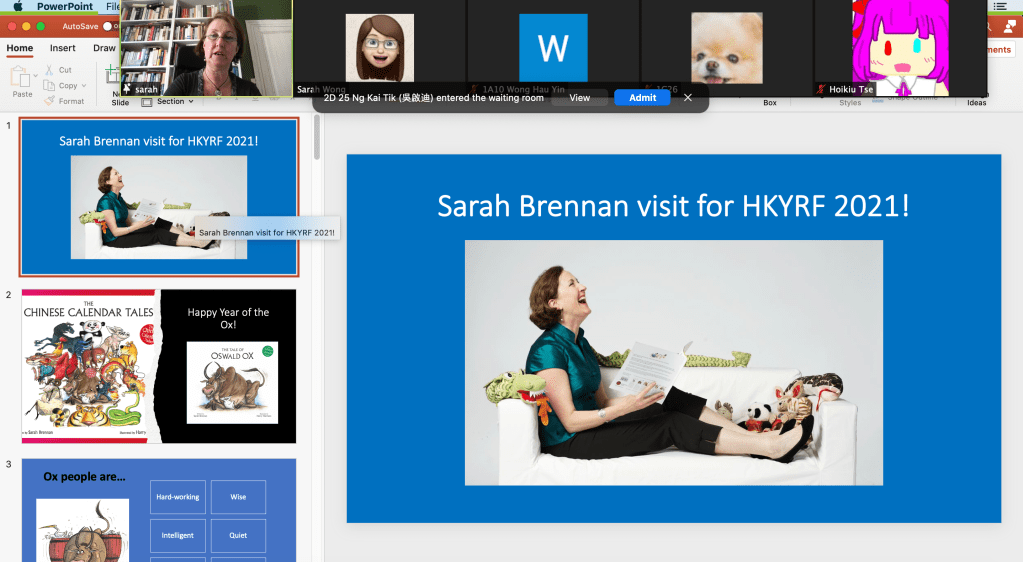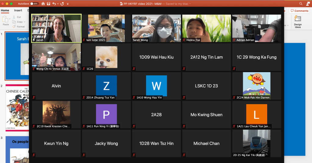 Today I had the great pleasure of meeting the students of Lee Shau Kee College in the New Territories, Hong Kong, in a fun one hour Zoom visit for the Hong Kong Young Readers’ Festival! After a welcome to the Year of the Ox, I told the students all about my new chapter book, The Marvellous Adventures of Maggie and Methuselah (A Hong Kong Mystery) including all the fabulous Hong Kong history behind it! Many thanks to Miss Sarah Wong, my host for the visit, and to Crystal Lau at Hong Kong Young Readers’ Festival who made the visit possible!