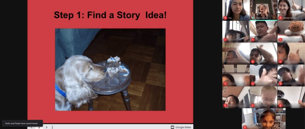 Wow that was fun! I had the most fantastic all day Zoom Visit with the Grade 4s to Grade 6s of Renaissance College HK on Monday! After welcoming the new Chinese Year of the Ox with a short story reading from The Tale of Oswald Ox, I showed the students a fascinating PowerPoint presentation about the fabulous TRUE history and mystery at the heart of my new chapter book for pre-teens, The Marvellous Adventures of Maggie and Methuselah (A Hong Kong Mystery). The kids went crazy with all their questions and comments about the Japanese invasion of Hong Kong in World War II, the hundreds of tunnels still existing under Hong Kong island and the New Territories, and the amazing true mystery of The Missing Chater Collection! A big THANK YOU to lovely teacher librarian Shirley Chan (pictured beside me below) for hosting me, and to the fabulous staff for helping to supervise the sessions!