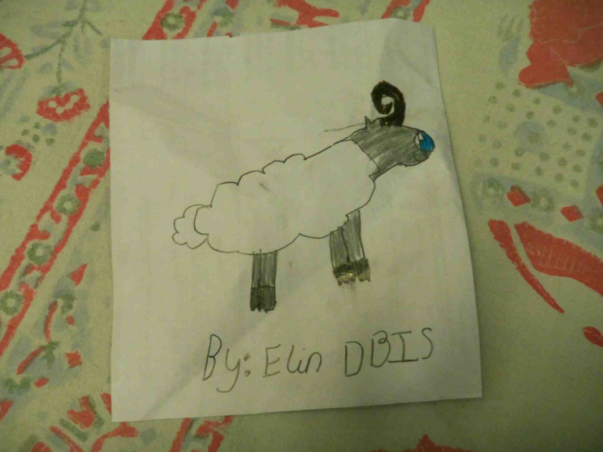 I had SUCH a fun day today with my old – and young 🙂 – friends at Discovery Bay International School today! The Grade 2s, 3s, and 4s met my shaggy, shy sheep Rodney, and then the gorgeous Grade 1s met my very vain (but loveable) Pin Yin Panda, and learned all about how the animals got into the Chinese Zodiac! We had a ball! Huge thanks to the wonderful Naomi Gist (above) for hosting me today! And even more thanks for letting me, and my family of Chinese Zodiac animals, make our getaway, very stylishly, in her Discovery Bay golf buggy! But trust that Pin Yin Panda to insist on riding in the front! You can also see below a fabulous drawing of Rodney Ram given to me by a lovely student called Elin – isn’t it terrific?